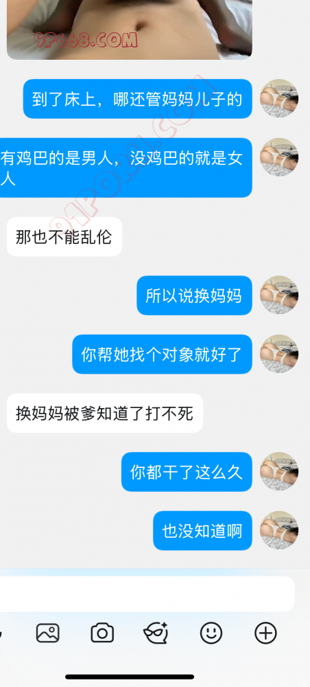 人与人的聊天感觉是不一样的,包括发消息的频率,口头禅,标点符号,聊天的节奏和内容都会给正在阅读的对方一个反馈一个感觉。然后呢今天继续更新,这次更新两个内容,一个是母子乱伦大戏,双视角;一个是我之前拍摄的私房照作品,希望有人和我约拍私房照。本想把黑人那部分也更新的但是确实截图太多没办法了,后面再更新吧